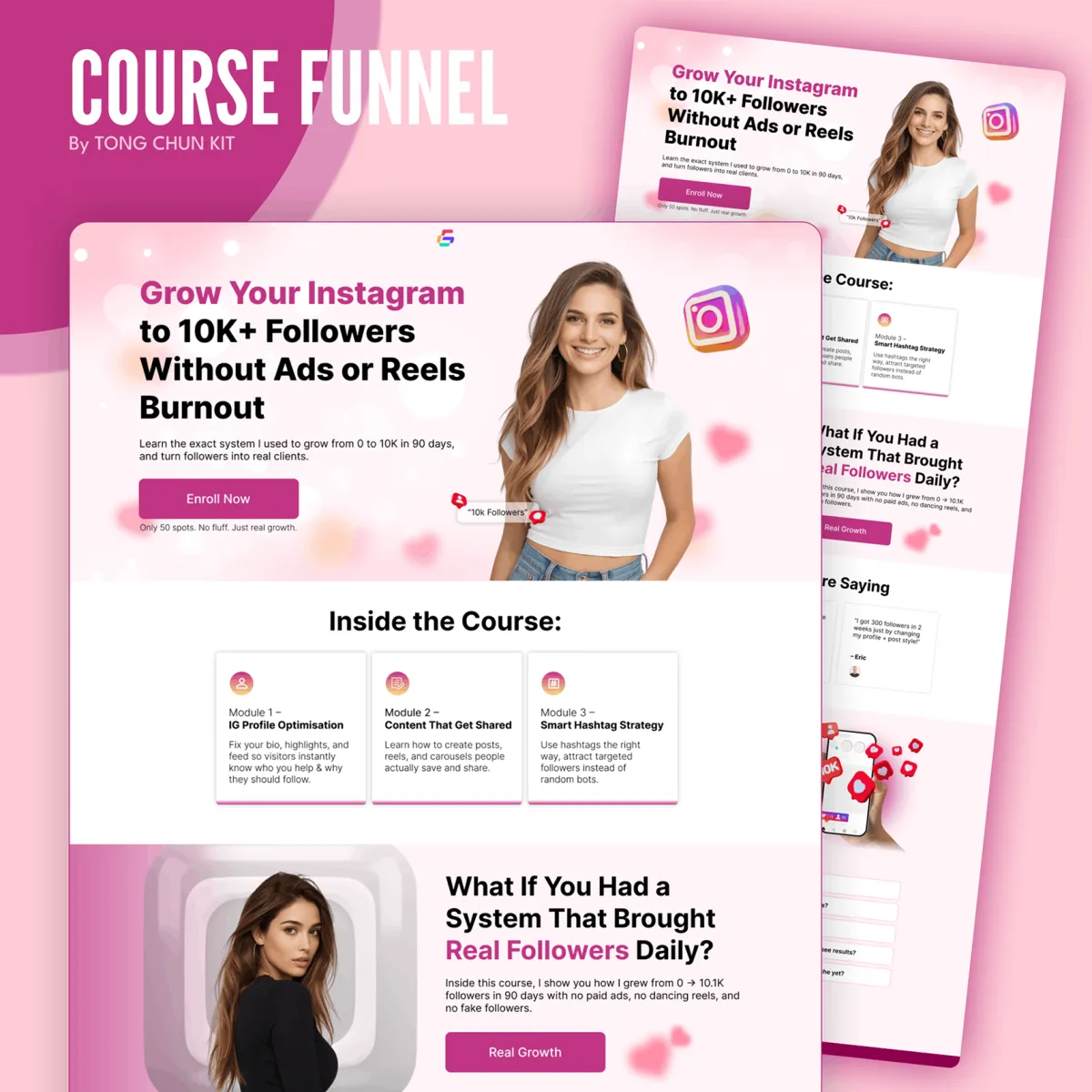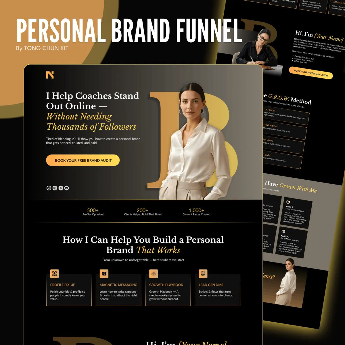 This is for coaches, creators, and business owners who want a funnel that looks clean, tells a clear story, and actually converts, not just something “pretty”.